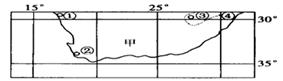 小题2:根据经纬度和轮廓可知该地在非洲南部,从波斯湾运往西欧的大型油轮必经之地。选择A项。