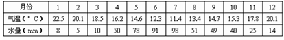 小题1:根据图表信息可知,温度高的季节降水少,温度低的季节降水多,最低温度早0摄氏度以上,所以是地中海气候。根据经纬度和轮廓可知该地在非洲南部,②城市是地中海气候。选择B项。