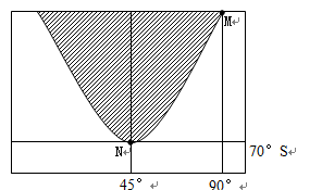 4、单选题  读图(阴影部分为黑夜),完成下列问题 1.此时,北京时间为2.此日M地的昼长为3.此日N地的正午太阳高度为