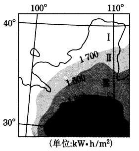 2、单选题  下图是“中国局部地区太阳年辐射总量分布图”,读图回答Ⅰ区太阳年辐射总量比Ⅳ区高,主要因为Ⅰ区