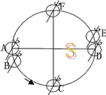 (2)在A、B、C、D、E、F六点中,处于近日点的是_______,每年_______月初地球经过此点;远日点