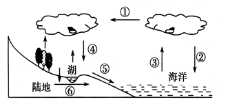 【小题1】修筑的京杭大运河,是影响地表径流;图示① 是水汽输送;④ 是降水;⑤是地表径流;⑥是地下径流。选C正确。