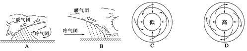 A.降水较多,气温较高 B.降水较多,气温较低 C.降水较少,气温较高 D.降水较少,气温较低 |
