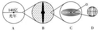 参考答案:(1)总星系 银河系 太阳系 地月系 (2)B (3)C
