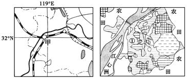 A.1区 B.2区 C.3区 D.4区 2、单选题 读甲城(南京)地理位置和城市用地结构图,回答问题。 |