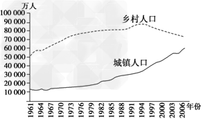 5、单选题 下图示意某国城镇人口和乡村人口的变化。读图,回答下面三个小题。