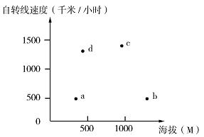 1、单选题 下图是地球表面自转线速度及海拔高度关联图,据图完成下面几题。