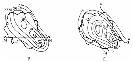 4、单选题 下图为我国天津市不同季节近地面气温空间分布示意图,其中图甲为“1985年7月6日夜间天津市近地面气温空间分布示意图”,图乙为“1982年12月18日夜间天津市近地面气温空间分布示意图”。根据图中提供的相关信息,思考并回答下列题。小题1:对比上面图甲和图乙,判断下列说法合理的是A.天津市的“热岛效应”在夏季强度更大B.天津市的“热岛效应”在冬季强度更大C.天津市近地面等温线夏季更为密集D.天津市近地面气温空间变化趋势在不同季节是完全相反的