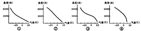 1、单选题 对流层中的上升气流会使飞行中的飞机颠簸。导致对流层气流上升的原因是:上层实际气温低于理论气温(按垂直递减率计算的气温)。下图表示四种对流层气温分布状况。
