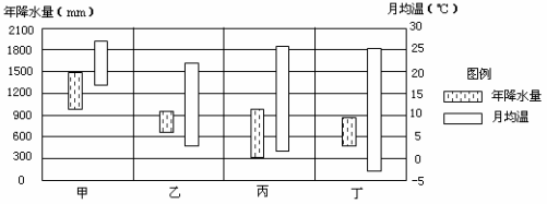 【小题1】与图中甲、乙、丙、丁四种气候类型相一致的城市分别为 ( )