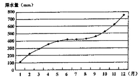 3、单选题 图是北半球亚热带某地降水量逐月累计曲线图。读图回答题。