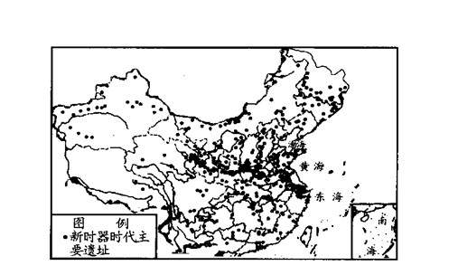3、综合题 读“中国新石器时代文化遗址图”,回答相关问题