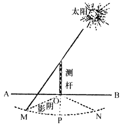 5、综合题 我国某地区中学的地理研究小组对学校所在地区进行了经线和纬度测定实验。下图是某天实验的示意图(MN弧是测杆阴影端的连线)。分析并回答下列问题。
