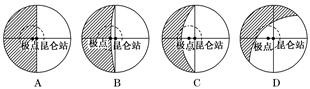 小题1:当天昆仑站正午时,若从昆仑站上空俯视地球,观察到的昼夜分布情况与下图大致相符的是? ( )