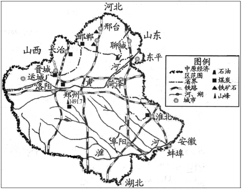 5、综合题 (28分)中原经济区范围包括河南、山东、安徽、河北、山西等地市,总面积约28.9万平方公里,总人口约1.5亿。根据下列材料,结合所学知识,完成(1)~(4)题。