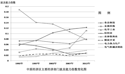 材料二:中原经济区主要经济部门的波及能力指数变化情况图。(波及能力指数反映某一部门的发展对社会经济发展的带动作用;指数越大,表明产业部门对社会经济的辐射能力越高)