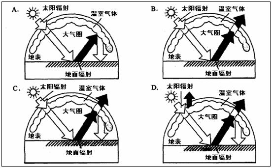 4、单选题 读下图,回答12~13题。小题1:近地面大气的热量绝大部分直接来自A.①B.②C.③D.④