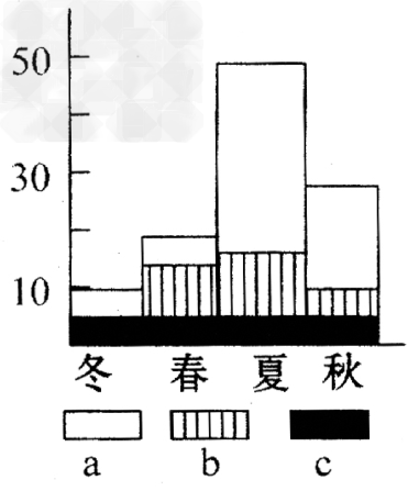 本题解析:结合东北地区河流水的主要补给类型,图示③补给量大,且主要分布于夏季,故判断为夏季降水;②主要在春季形成补给,故判断为春季的积雪融水;而①补给终年较稳定,故判断为地下水补给。