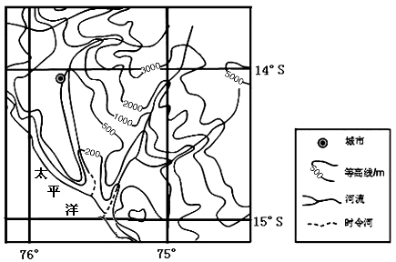 4、单选题 下图为世界某区域图,图中沿海地区年降水量约50毫米,读图完成下列小题。
