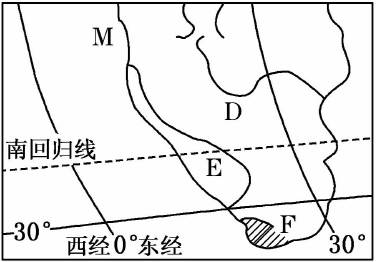 1.由题干结合图示可知,E地沿岸有本格拉寒流经过。