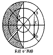 (1)根据地球的自转方向可以判断中心为南极点,相邻两条经线的间隔为45°,A点昼弧约为270°,昼长为18个小时,日出时间为3时。