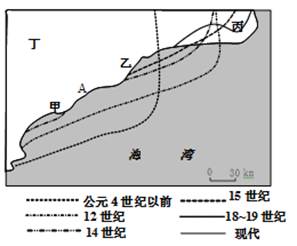?![]() 2、单选题 岸线的进退主要受到流水沉积、海水侵蚀和人类活动的影响。读某中纬度海岸线历史变迁图,回答下列各题。 |