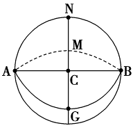 5、单选题 读图,N为北极点,大圆为经线圈,ACB为赤道,据此完成下列问题。