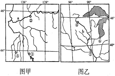 (1)分别写出图甲中a河流流经的主要地形区名称和图乙中b河流注入的大洋名称,并简析图乙中湖泊对图示区域经济发展的重要作用。
