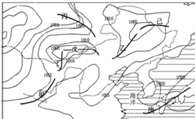 G.若甲地区为雨雪天气,则庚为副热带高压脊