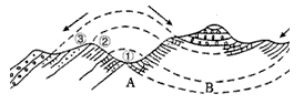 B、①处地质构造是断层