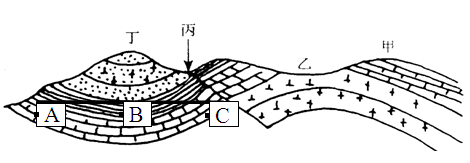 (1) 丁处地质构造名称是_________________,丙处的地质构造为_________________。