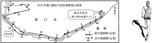 3、单选题 经国家体育总局批准,2010年厦门(北纬24°27′,东经118°06′)国际马拉松赛事于北京时间1月2日上午8点鸣枪开赛。下图为2010年厦门国际马拉松赛路线示意图和某女运动员比赛过程即时素描图。当该女运动员到达全程赛事终点时,她的身影向正北并大致与身高相等。结合下图回答小题。
