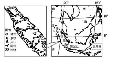(1)简要概括苏门答腊岛的自然地理特征并填入表中?