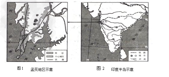 (1)简析印度半岛20 ?N以南区的城市分布特征及主要影响因素。