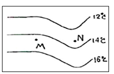 | 小题2:如果M、N表示陆地和海洋交界地区的等温线,下列叙述正确的是(?) A.M地的温度低于N地 B.M地为陆地,则表示的季节为此区冬季 C.M地为海洋,则表示的季节为此区夏季 D.此图若是7月份等温线图,M为陆地