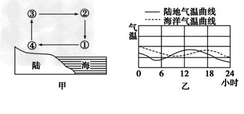 2、单选题 影视剧中往往让女演员面朝大海,海风吹拂下让头发向后飘逸以反映女演员的快乐心情。结合“北半球某滨海地区海陆环流图”(甲图)和“气温变化特征图”(乙图),回答1 ~2题。