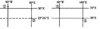 1、单选题 下图中①②③④是世界四条大河入海口附近。据此回答3—4题。