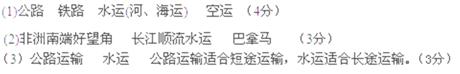 (1)与铁路和公路运输相比,海运的优势是________________________________________________。