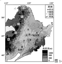 本题解析:小题1:甲地在一年中大部分时间是我国日出最早的地方;漠河在北极圈外,没有极昼极夜现象;大兴安岭是我国内、外流区的分界线,而非绝对的内、外流区分水岭;松花江干流自西南流向东北(低纬度流向高纬度),上下游结冰期不一致,故有凌汛现象。