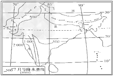 (1)R河是_______,它的主要补给是_______,该河流河水流量变化较大的主要原因是_____________________。 (2)描述A区域降水情况,并分析原因。 ________________________________________________________________________________ (3)水稻是印度的主要粮食作物,主要分布在恒河中、下游地区和高原东北部,请你评价印度种植水稻的有利条件。 ________________________________________________________________________________