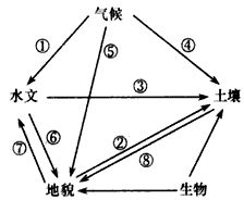 5、单选题 图为陆地环境主要构成要素的相互关联图,读图完成1—2题。