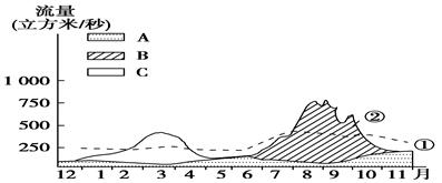 3、综合题 下图是我国东部某地区一水电站大坝下游某水文站在修坝前后测得的该河两条全年流量曲线图。读图5,回答下列问题。(10分)