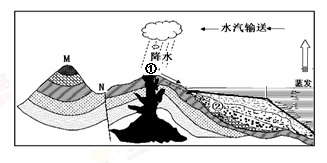 (4)假设图中所示地区为我国东南沿海地区,则水循环中的水汽输送量最大的季节是          。“南水北调”工程体现了人类对水循环          环节的影响。(2分)