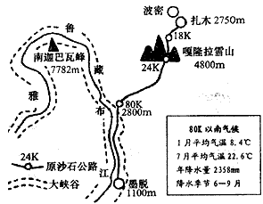 D.墨脱地处喜马拉雅山迎风坡,降水丰沛