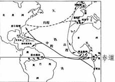 4、单选题   16世纪开始,欧洲奴隶贩子从本国出发,装载盐、布匹、朗姆酒等到非洲换成奴隶,再经大西洋到美洲换成糖、烟草后返航欧洲。航线如图所示,大致构成三角形状,从"三角贸易"航海路线可以看出,欧洲奴隶贩子已有一定的航海知识,他们在“归程”中横渡大西洋时,利用的洋流是