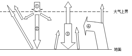 小题1:图中①表示到达大气上界的太阳辐射,②表示到达地面的太阳辐射,③表示大气逆辐射,④表示大气吸收的地面辐射。故选C。