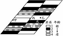 A.a顶部 B.b顶部 C.a和b顶部 D.b和c顶部 3、单选题 左下图为某地水平地质剖面图。某日发生地震(丙地的地表为震中),根据甲、乙两地观测站的地震波记录,绘出了地震横波与纵波的走时曲线图(右下图),据此回答下列各题。 |