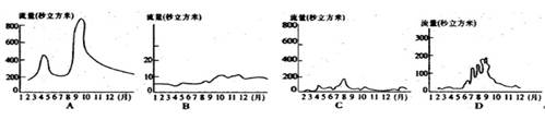 3、单选题 以下四幅图中,反映我国东北地区河流径流变化情况的是