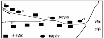 a、b、c、d四城市沿河分布,在其他条件相同的情况下,发展速度较快的城市是