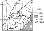 小题1:结合等值线的原理分析可知,图中四个区域中,甲、丙气温均在28℃以上,气温较高,只有乙、丁两地气温较低。